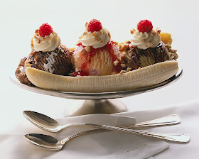 - Ice cream and other frozen products consumed as dessert. Ice cream is often topped with caramel or chocolate, mixed or served as a milkshake. The companion of cakes, pies, pancakes, waffles, fruit and biscuits. It can be served with fresh fruit or canned, like a banana split or a fruit sauce.